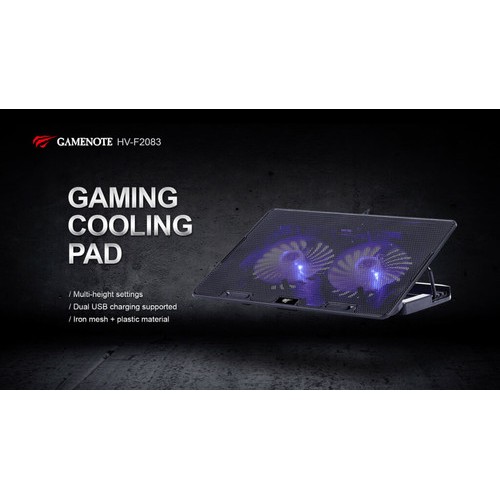 Havit F2083 Dual Fan Laptop Cooler is compatible with 15.6" to 17" Laptops. It is made of safe strong material. It comes with LED light. It features dual fans for strong cooling. The fan dimension is 125x125x15mm. It has a voltage range of 5V and it consumes 1.75W of power. The dimension of the cooler is 350x250x30mm.
